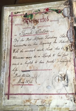 We do not know when the family moved to South Africa, but we do know that Sarah Eaton left Port Alfred Sunday School in May 1874, when she was presented with a Bible which is in my possession. I have a photo of her, aged 17, taken in Grahamstown, Eastern Cape.